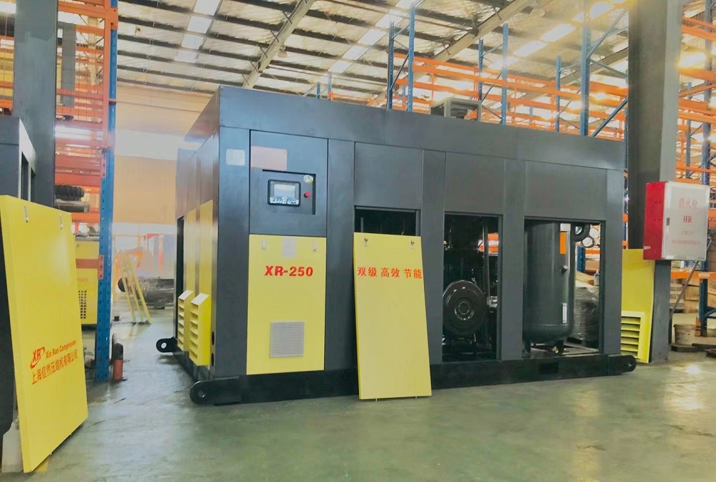 信然大型永磁變頻兩級(jí)壓縮螺桿空壓機(jī)多集裝箱發(fā)往越南共和國支持代理商開春…