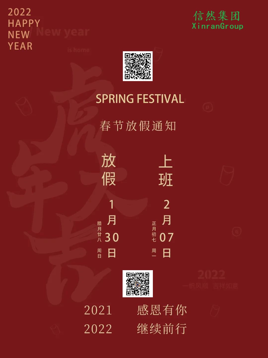 壬寅虎年,?信然集團?春節(jié)放假通知