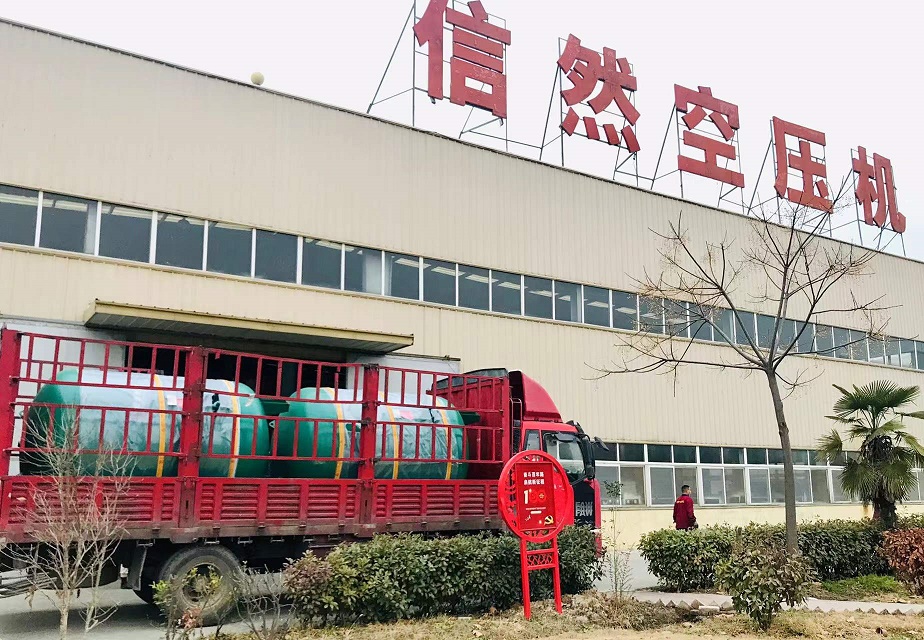 信然高壓大型壓縮機(jī)配套儲(chǔ)氣罐準(zhǔn)備發(fā)貨