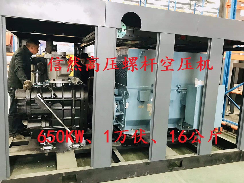 信然集團(tuán)8套650KW、10KV高壓16公斤螺桿式雙級節(jié)能空壓機(jī)周末加班生產(chǎn)中
