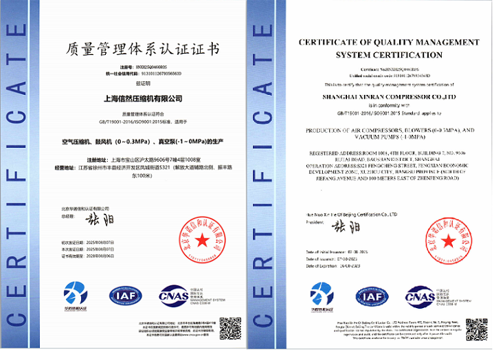 上海信然壓縮機有限公司再次通過國際標準化組織(ISO)三體系審核。此次審核的范圍包括:空氣壓縮機、鼓風(fēng)機(0-0.3Mpa)、真空泵(-1-0Mpa)的生產(chǎn)等。