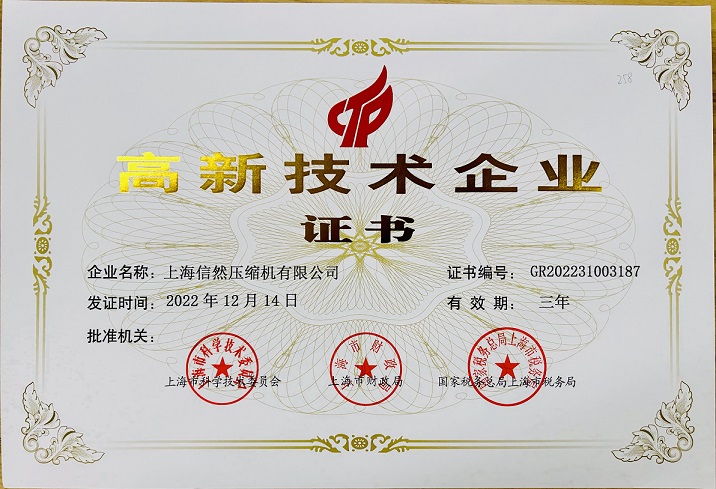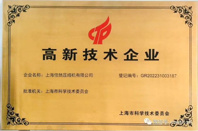 熱烈祝賀上海信然壓縮機榮獲“國家級高新技術(shù)企業(yè)”稱號