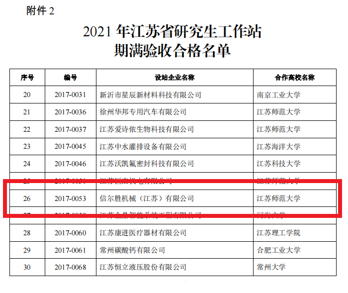 祝賀:信然集團(tuán)(江蘇)工廠信爾勝省級(jí)研究生工作站期滿驗(yàn)收合格 信息來(lái)自:江蘇省教育廳、江蘇省科學(xué)技術(shù)廳