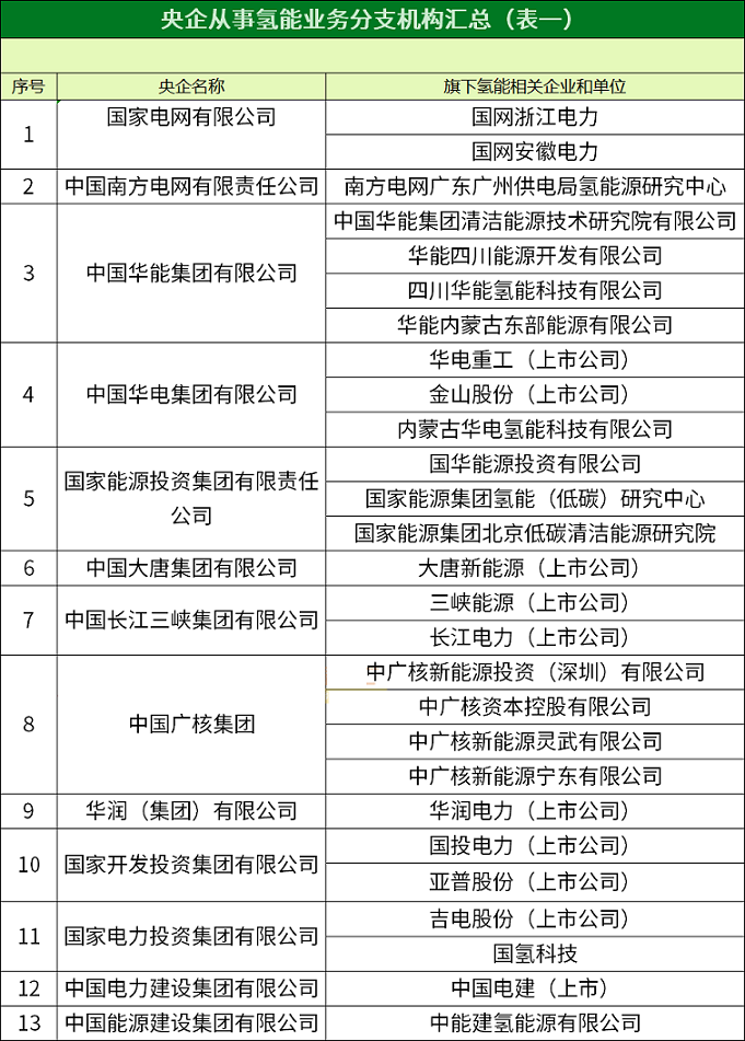 咨詢:400-110-9566據(jù)2023年央企名錄,目前有98家央企,其中能源電力、煤炭、電氣、石油化工、航天科技、船舶制造等行業(yè)的央企超九成開(kāi)展了氫能業(yè)務(wù)的研發(fā)和生產(chǎn)。在地方國(guó)企中,也有大量企業(yè)進(jìn)入氫能領(lǐng)域,在各地開(kāi)發(fā)氫能項(xiàng)目。氫能匯分兩期對(duì)央國(guó)企中涉及氫能業(yè)務(wù)的子企業(yè)及項(xiàng)目進(jìn)行匯總。此為第一篇,以能源電力央企為核心: