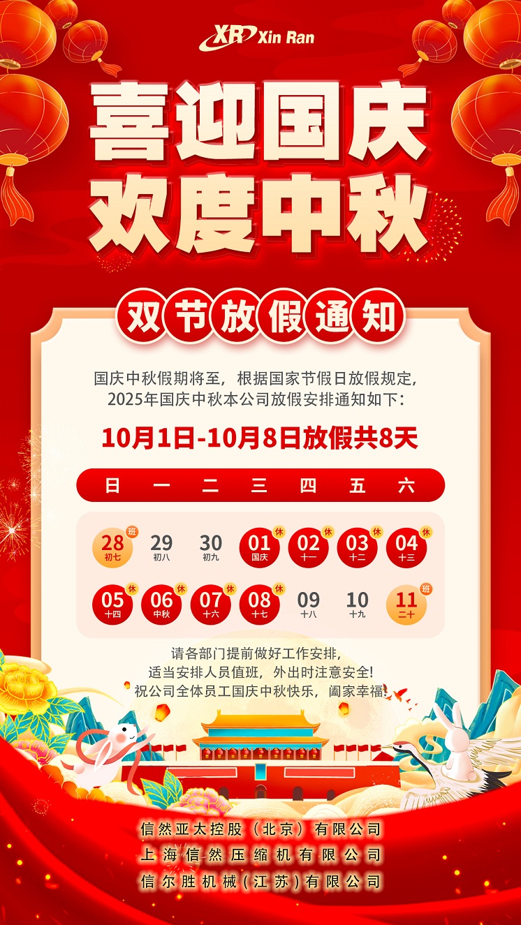 信然壓縮機(jī):喜迎國慶 歡度中秋 雙節(jié)放假通知