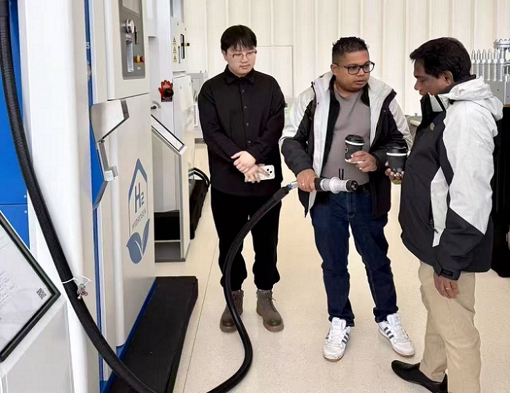 On October 23, after visiting the compressor factory of Xinran Group, the Sri Lankan delegate arrived by high-speed train at China Hydrogen Energy Group Co., Ltd. located in Daxing, Beijing. Accompanying the visit and providing warm hospitality were Li Na, Si Nan, Wang Jingwen, Li Mingbo, Bao Menghe, Xu Chang, and others from the International Trade Department of Hydrogen Energy Group.
