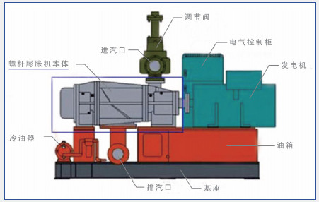 螺桿膨脹發(fā)電機組是以螺桿膨脹機作為動力機,拖動發(fā)電機發(fā)電的發(fā)電機組。