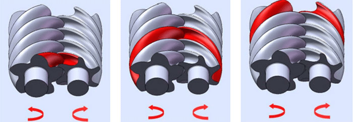 信然螺桿膨脹機(jī)是一種容積式膨脹機(jī)。通常所稱的螺桿膨脹機(jī)指雙螺桿膨脹機(jī),信然螺桿膨脹機(jī)是專門為氣體的膨脹開發(fā)優(yōu)化。主要由一對互相嚙合的螺桿轉(zhuǎn)子和機(jī)殼組成,轉(zhuǎn)子與轉(zhuǎn)子、轉(zhuǎn)子與機(jī)殼之間以間隙密封,形成容積可連續(xù)變化的工作腔,含有熱量的氣態(tài)工質(zhì)進(jìn)入工作腔絕熱膨脹,驅(qū)動轉(zhuǎn)子旋轉(zhuǎn)做功,膨脹做功的同時(shí),工質(zhì)的壓力和溫度降低,以此實(shí)現(xiàn)熱功轉(zhuǎn)換。螺桿式膨脹機(jī)進(jìn)氣可以是飽和蒸汽甚至帶液蒸汽;螺桿之間的相對運(yùn)動可以限制結(jié)垢,另外結(jié)構(gòu)也可以減小間隙,提高效率;螺桿膨脹機(jī)的變工況范圍廣,即使在較低負(fù)荷仍會有很高的效率。