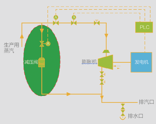 高溫高壓干濕飽和蒸汽或氣體無需任何中間介質(zhì)直接進(jìn)入螺桿膨脹機(jī),推動膨脹機(jī)做功,在給定的蒸汽壓力和條件下的電力產(chǎn)出,膨脹機(jī)出口蒸汽可根據(jù)需求條件進(jìn)入下步工序或回收利用。